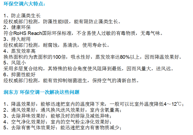 结论 滨联环保空调总费用每年比传统空调节省25200元而且综合效果比传统空调好。 滨联环保空调每年总费用比同等面积所需传统风机节省5040元,且效果远比传统风机卓越。 |
