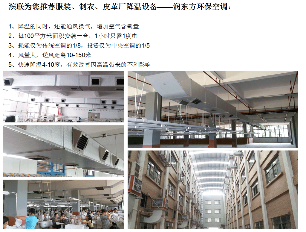 结论 滨联环保空调总费用每年比传统空调节省25200元而且综合效果比传统空调好。 滨联环保空调每年总费用比同等面积所需传统风机节省5040元,且效果远比传统风机卓越。 |